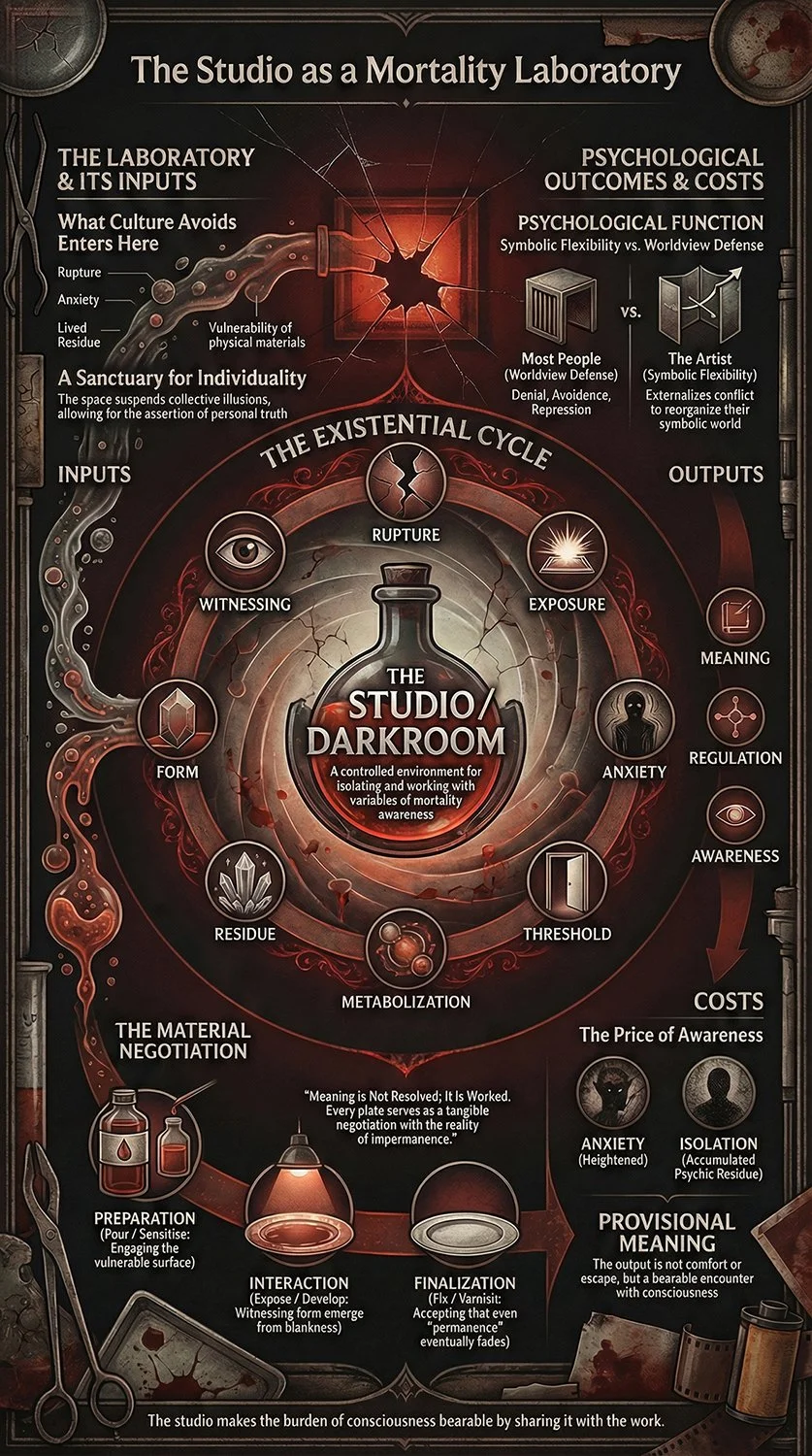 This is where artists, thinkers, and creators often occupy a strange middle ground. Creative practice can serve as a way to metabolize existential anxiety without demanding total allegiance to a single belief system. Art doesn’t promise salvation. It leaves residue. It holds ambiguity rather than resolving it. It allows meaning to emerge without pretending it will last.