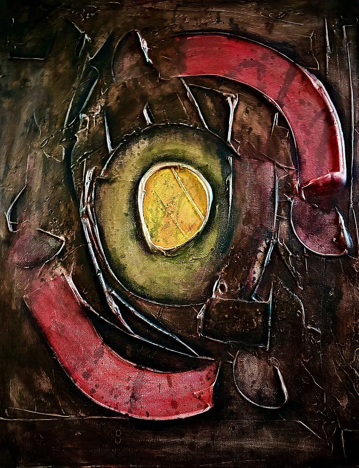 Arts-based research treats the artwork as primary data and the making process as an investigative method. The decisions I made; impasto that builds up and cracks, a spiral that compresses rather than expands, colors that register as bodily rather than symbolic, these aren't aesthetic choices decorating research findings. They are the research. The painting generates understanding about death anxiety, compulsion, and cultural reproduction (egg) that exists in formal and material relationships rather than in arguments.